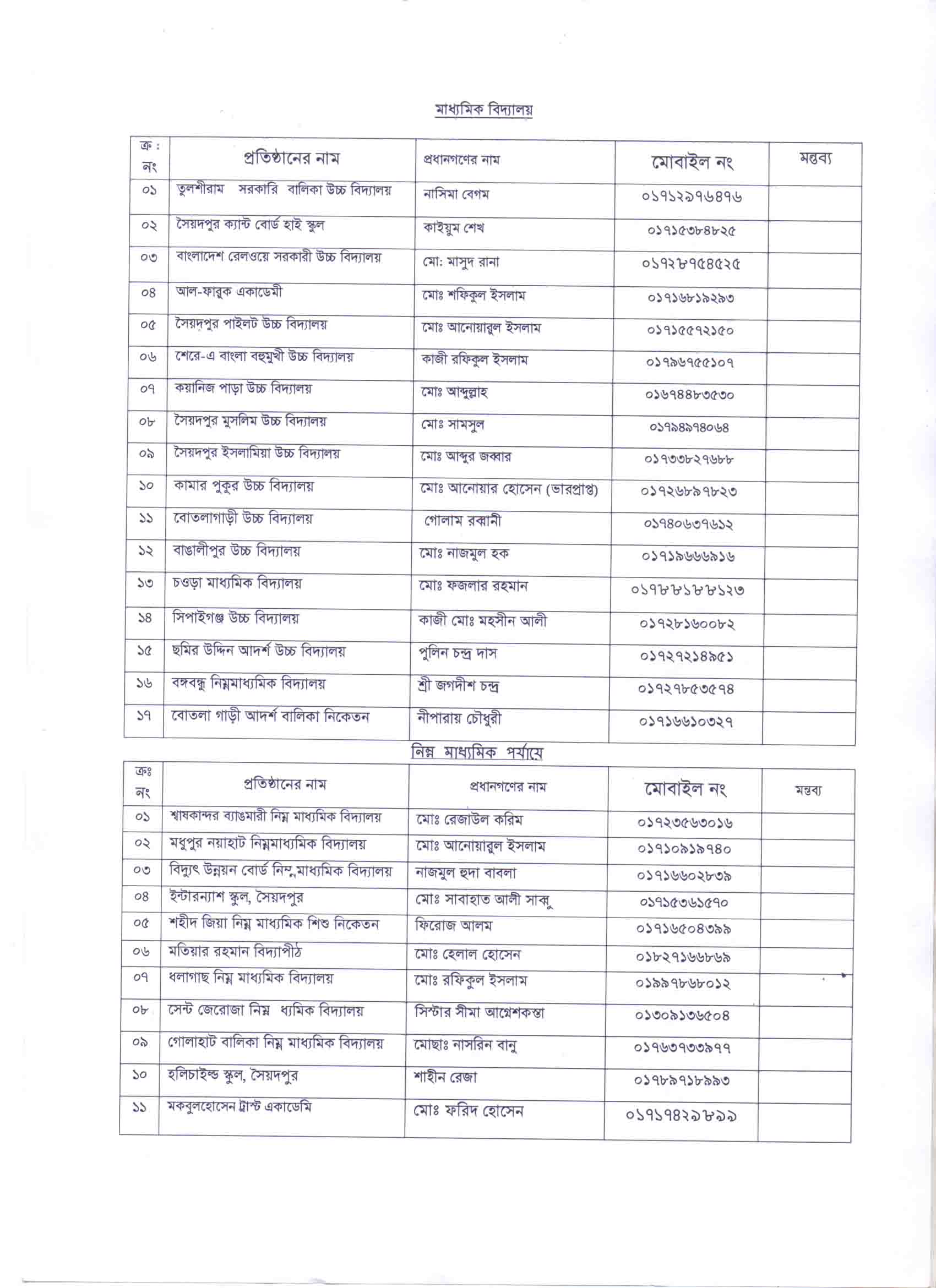 সৈয়দপুর উপজেলার মাধ্যমিক ও নিম্ন মাধ্যমিক বিদ্যালয়ের তালিকা